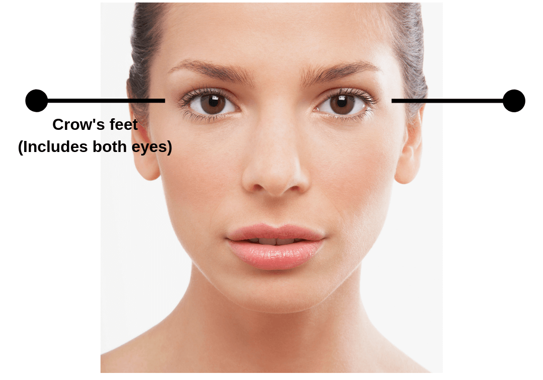 The fine lines around your eyes (crow’s feet) are considered “One area” and require 20 units of Botox to be effectively treated.
